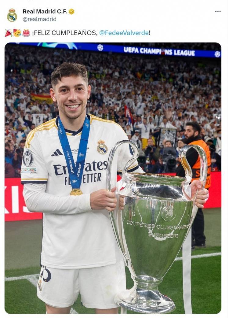 皇马官方祝巴尔韦德27岁生日快乐,加盟至今出战323场斩获14冠 admin 2025年07月22日 17:30 55 0 直播吧7月22日讯 今天是皇马中场巴尔韦德的27岁生日,皇马官方为他送上祝福。皇马官方社媒晒出巴尔韦德与欧冠奖杯的合照,配文:“生日快乐,巴尔韦德!”巴尔韦德2016年以500万欧转会费从佩纳罗尔加盟卡斯蒂亚,至今为皇马一线队出战323场比赛,打进32球,助攻31次,随队赢得3次西甲冠军、1次国王杯冠军、3次西超杯冠军、2次欧冠冠军、2次欧超杯冠军、2次世俱杯冠军和1次洲际杯冠军。 标签: #巴尔韦德 #卡斯蒂亚 #随队 #佩纳罗尔 #欧冠 #助攻 #官方 #世俱杯 #皇马 #冠军 #祝巴尔韦德